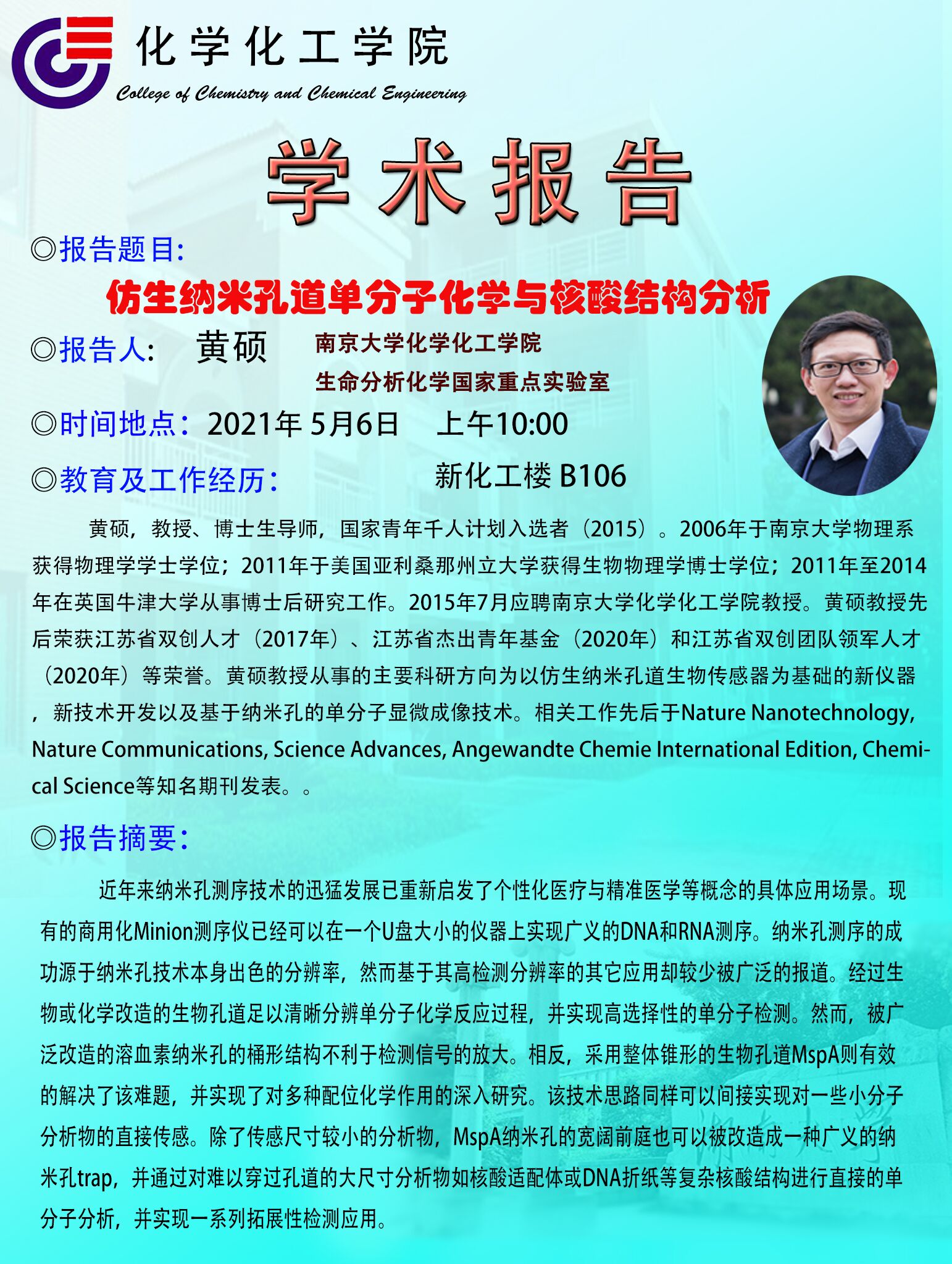 化工院:仿生纳米孔道单分子化学与核酸结构分析
