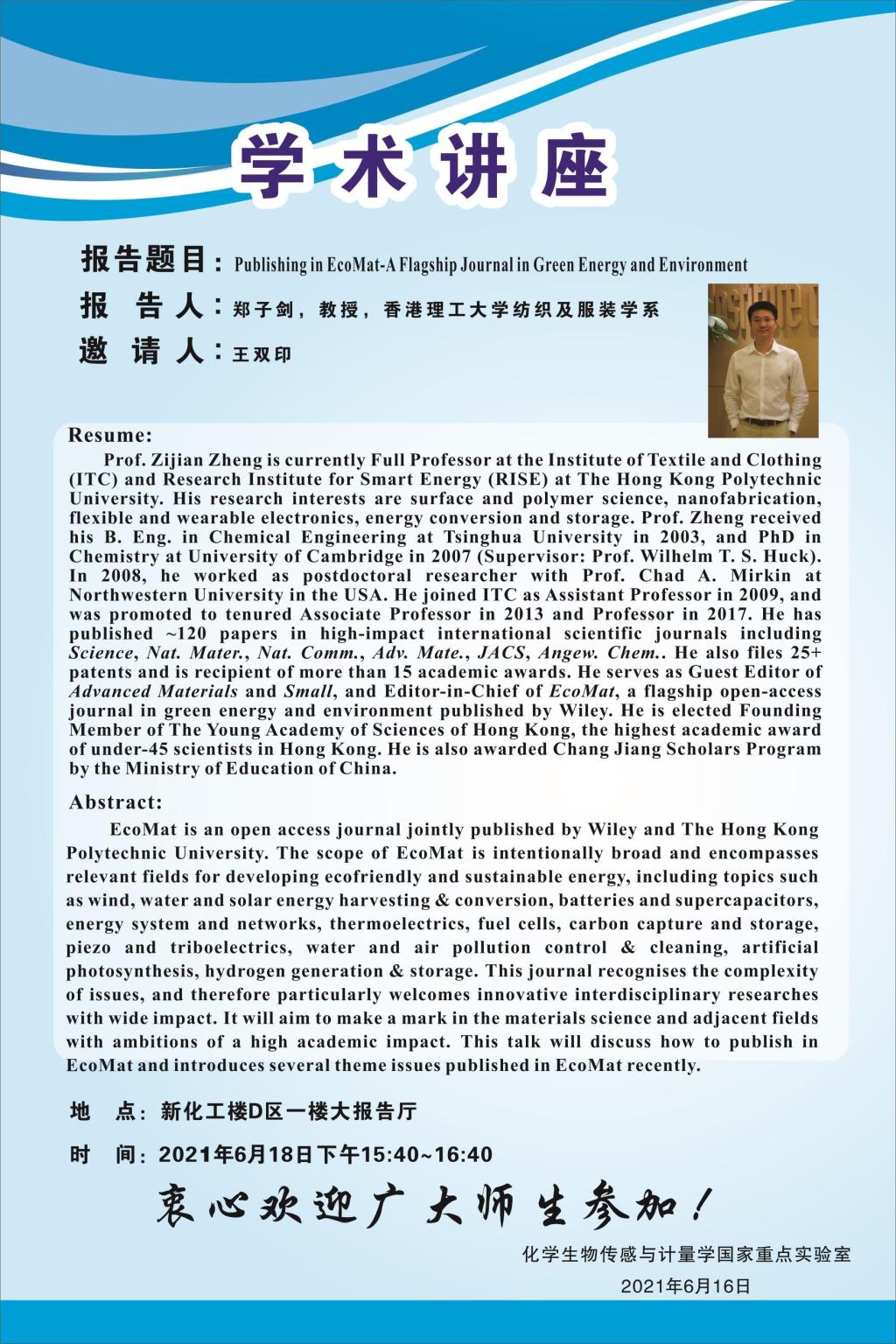 化工院:Publishing in EcoMat-A Flagship Journal in Green Energy and Environment