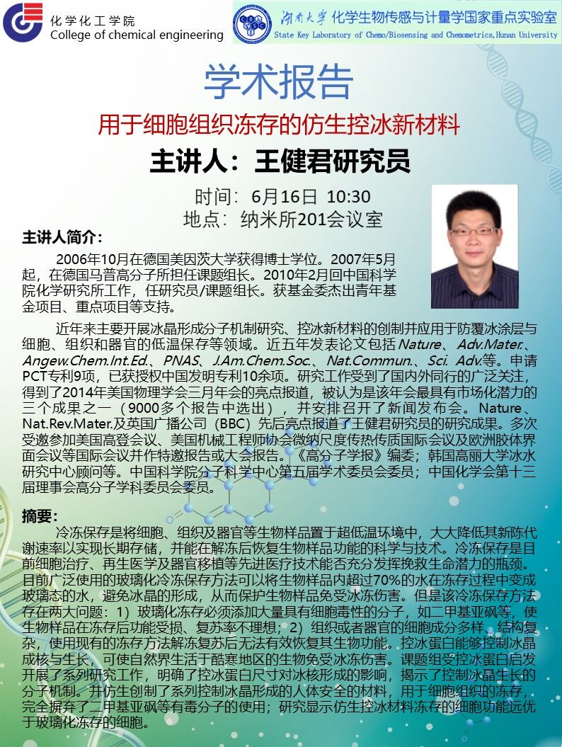 化工院:用于细胞组织冻存的仿生控冰新材料