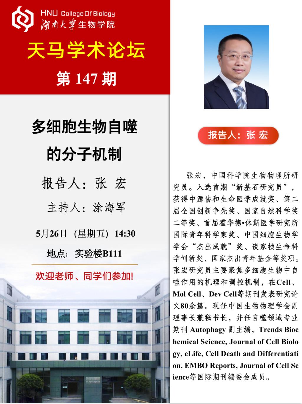 学术地点 实验楼B111 主讲人 张宏