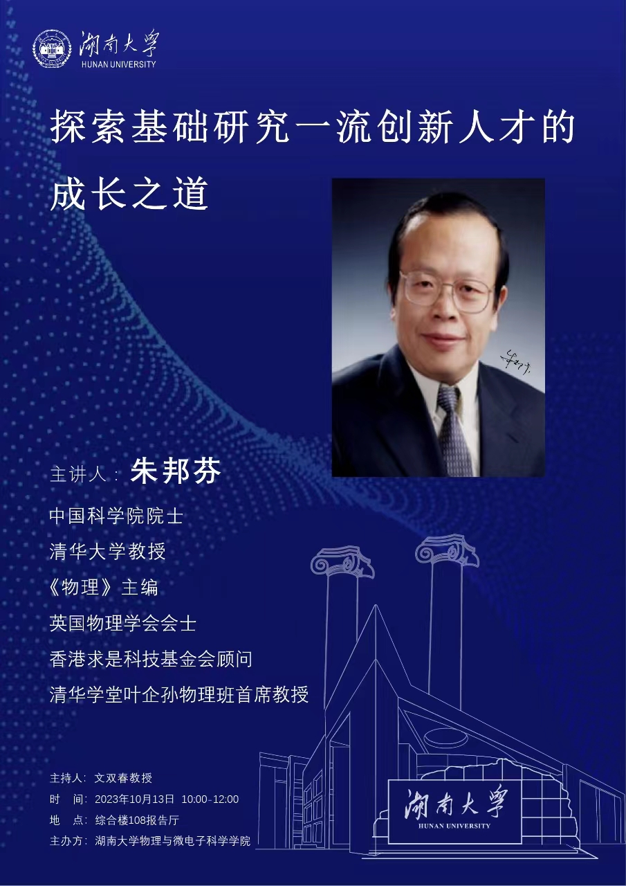 学术地点 综合楼108报告厅 主讲人 朱邦芬院士