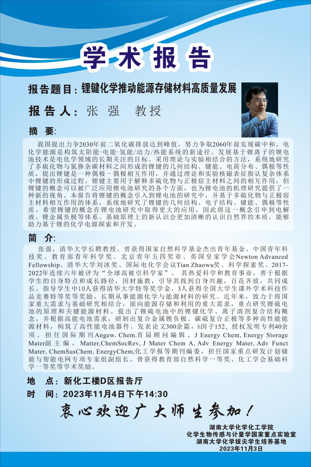 学术地点 新化工楼D区报告厅 主讲人 张强