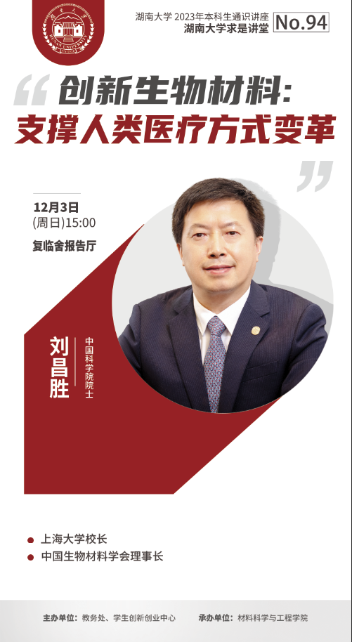 求是讲堂|刘昌胜:创新生物材料:支撑人类医疗方式变革