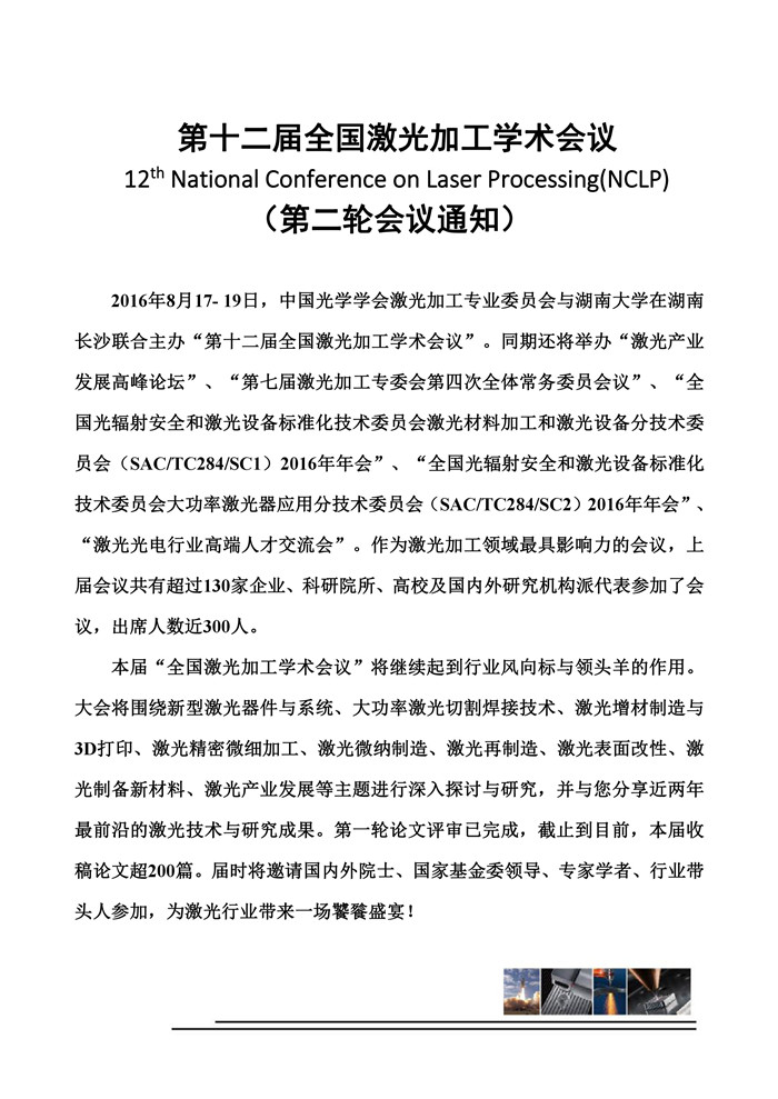 2016/07/11第十二届全国激光加工学术会议第十二届全国激光加工学术会议通知(第二轮).pdf c6dbd7f68099a7684564ab0c454f84bf.pdf (413.23 KB) -